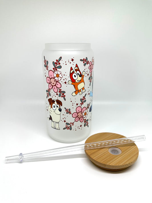 Springtime Bluey Glass Cup, Bluey and Bingo Glass Cup